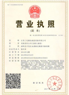 江蘇三毛教儀成套設備有限公司是一家集設計、生產(chǎn)、銷售、售后為一體的大型制造企業(yè)。坐落于風景秀麗的花木之鄉(xiāng)、全國經(jīng)濟百強縣、國家級經(jīng)濟開發(fā)區(qū)沭陽縣永嘉路。